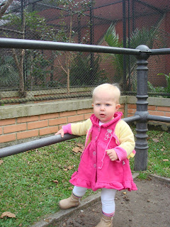 Which brings us back to "bota", and then pointing to the door. "Bota," we've come to learn, doesn't just mean footwear. It also means "walking". Then from walking, she extended "bota" to mean going outside and seeing the world (her favorite activity), and perhaps even the abstract concept of freedom (she'll sometimes say "bota" as she pulls her hand out of mine or Rita as we try to help/control her). So as she woke this morning and said "bota", she didn't just mean, "put my shoes on," but also "and then let's go out in the garden and look at flowers and run around and don't think that I'll hold your hand the whole time, either!" Which is, by the way, what she and Rita are doing as I write this blog.